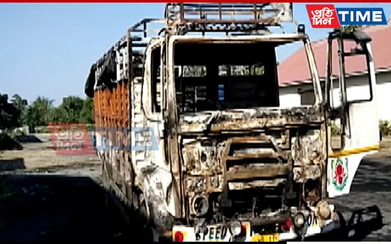The truck was reportedly kept at the Gossaigaon Police Station. Around 200 meters from the Police Station, the truck was mysteriously set on fire.