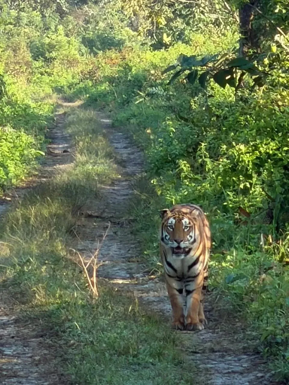 The tiger population at Manas National Park is steadily increasing, bringing thrill and excitement to visitors. Recently, tourists were treated to a rare and mesmerising sight—a majestic tiger roaming freely in the park.